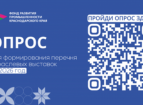 Опрос производителей промышленной продукции Краснодарского края об участии в эффективных отраслевых выставках продлится до 30 сентября 2025 года, в случае невозможности пройти опрос на сайте Фонда предприятие может направить свои предложения по участию в отраслевых выставках на фирменном бланке организации на электронный адрес: parkhomenko@firpkk.ru.