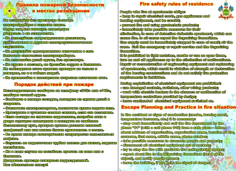 В целях исполнения пункта 1.4. раздела III протокола доводим хозяйствующим субъектам, осуществляющими деятельность в сфере туризма, о необходимости размещения в местах визуальной доступности, гостевых папках для проживающих в номерах сформированные Главным управлением МЧС России по Краснодарскому краю памятки о соблюдении требований пожарной безопасности (прилагаются).