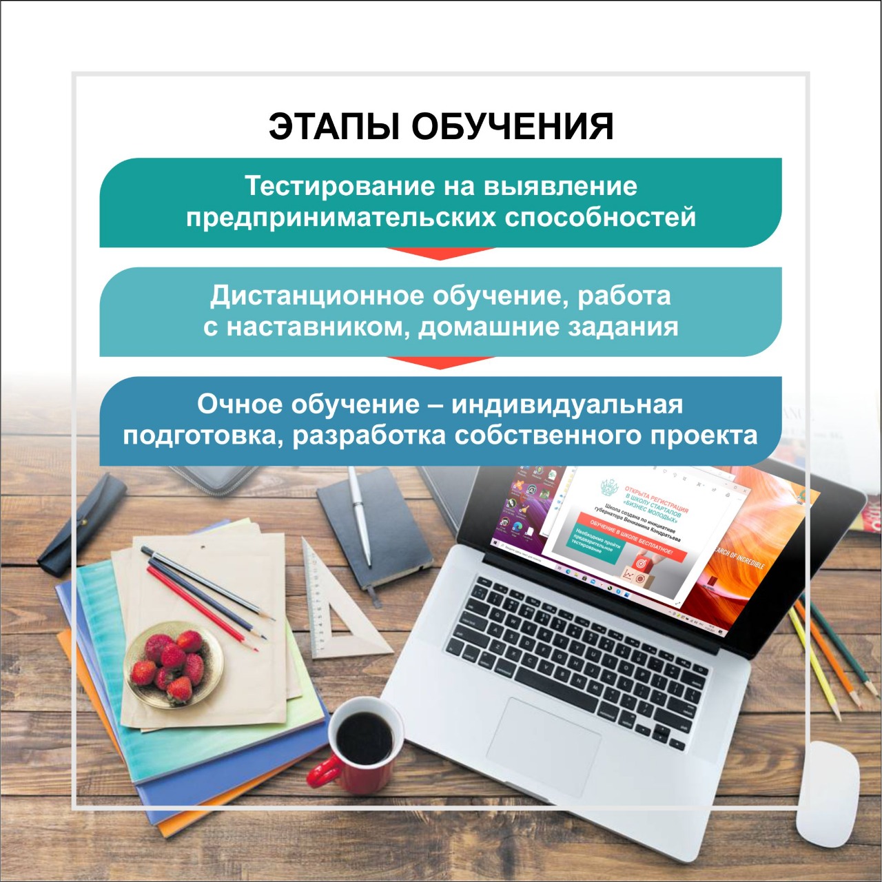 Попасть в региональную бизнес-школу можно после прохождения обязательного тестирования. Зарегистрироваться на него можно по ссылке.